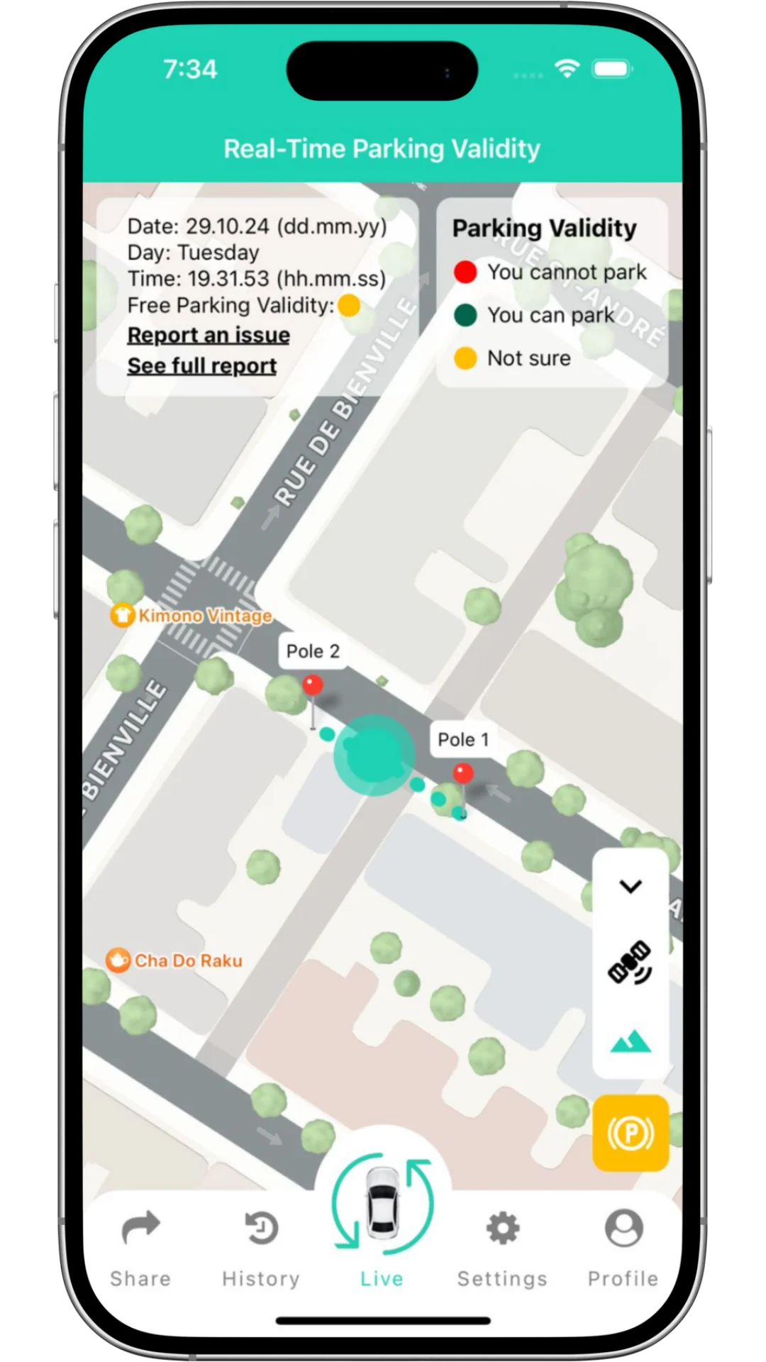 The system connects drivers to nearby open parking spots instantly and guides them with turn-by-turn directions for faster, stress-free parking.