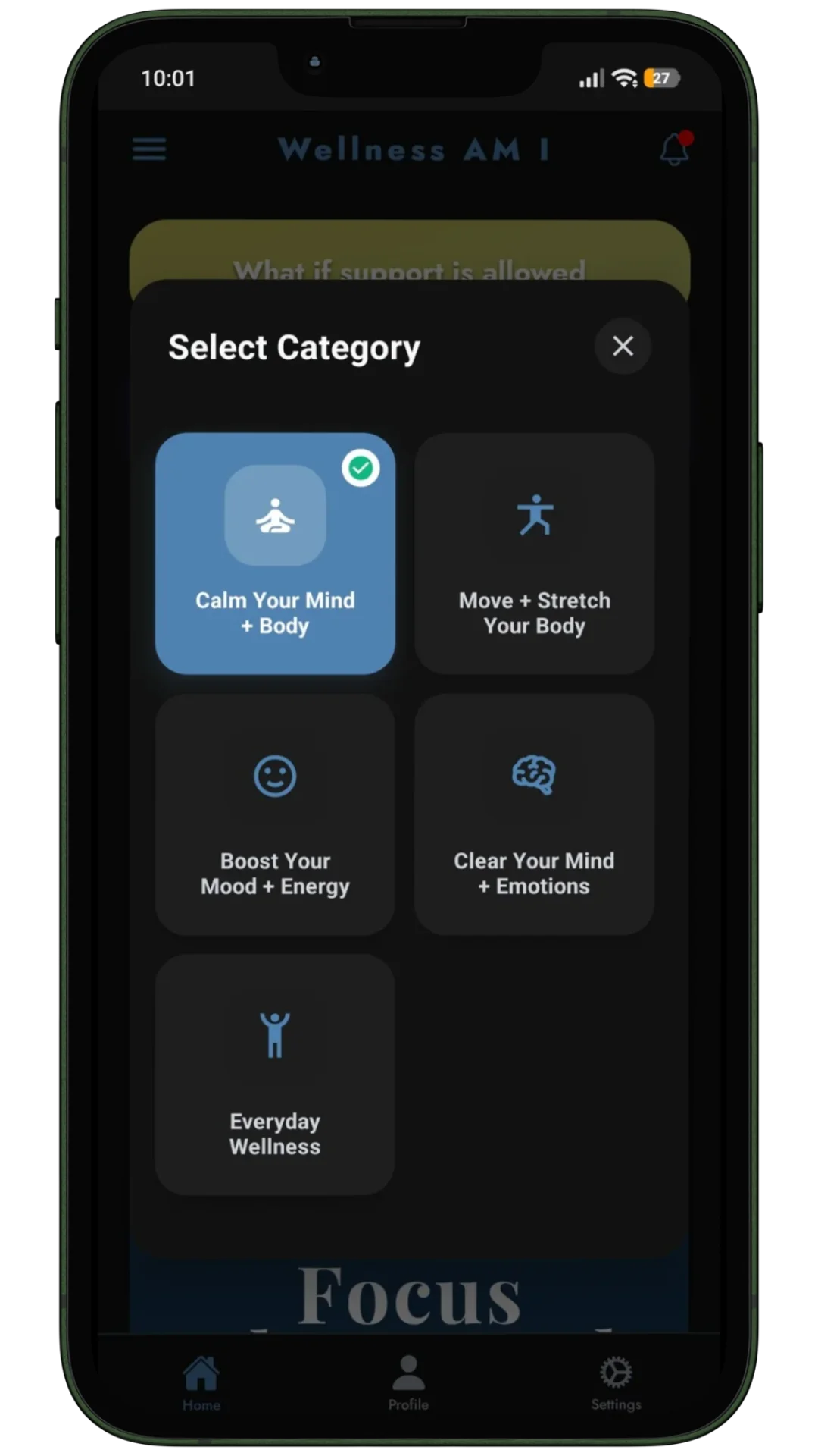 A closer look at the main screens powering the Wellness AM I experience across the Mobile App.
