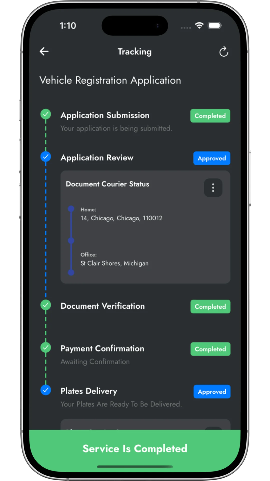 Customers can track registration and plate request status with real-time updates.
